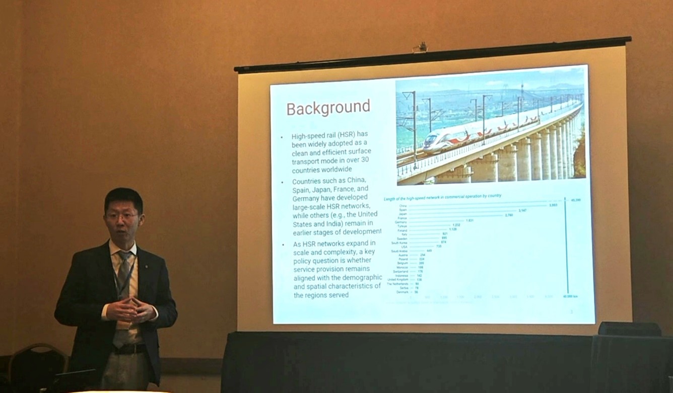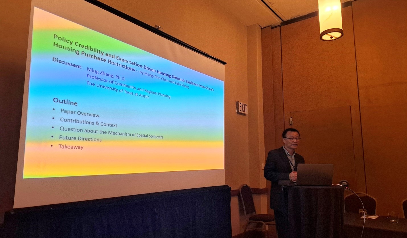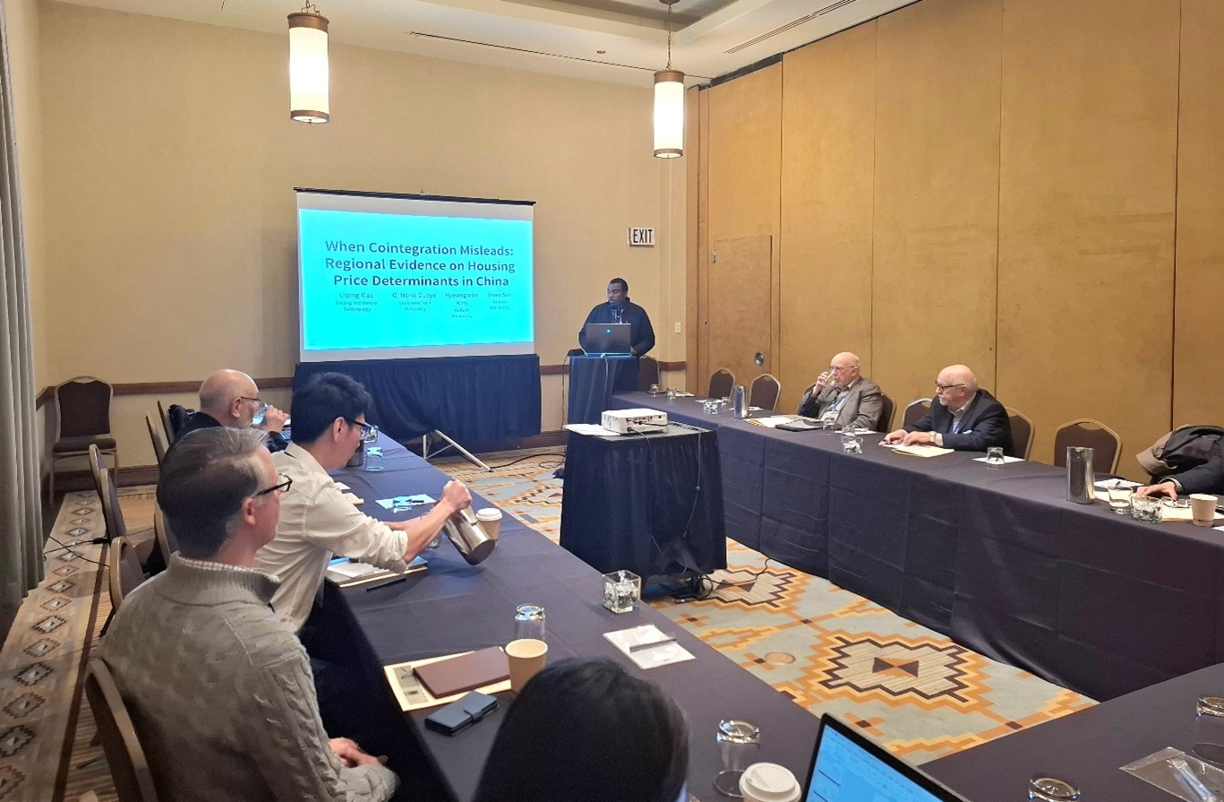 The session featured four academic presentations covering a range of topics, including population and employment dynamics, the scaling structure of high-speed rail networks, housing policy and expectation-driven demand, and the determinants of regional housing prices in China. Associate Professor John Carruthers (Cornell University) presented research on employment and population dynamics across Chinese prefectural-level cities. Associate Professor Zhenhua Chen (The Ohio State University) introduced an integrated urban scaling–gravity framework to evaluate China’s high-speed rail network, examining the structural alignment between service provision and urban scale. Assistant Professor Jiakai Zhang (New Mexico Institute of Mining and Technology) analyzed the interaction between housing purchase restrictions and expectation-driven housing demand. Associate Professor Ghislaine Gueye (Louisiana Tech University) offered a regional econometric perspective on the determinants of housing prices in China.